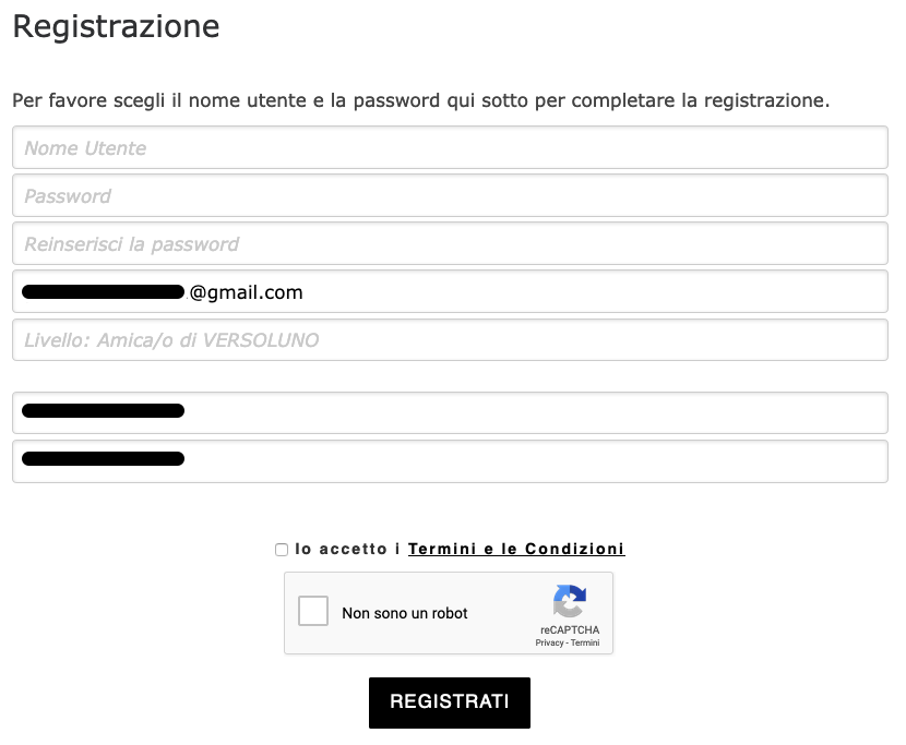 Creare un account su VERSOLUNO è molto semplice, segui le istruzioni attentamente. Quando sarai abilitato, potrai accedere al BLOG con le tue credenziali e potrai visualizzare e usare aree protette. Attraverso questa registrazione, attivi in automatico anche la newsletter.